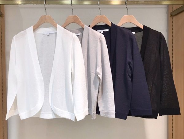 接触冷感の生地を使用した、ひんやり涼しげな着心地のボレロ。