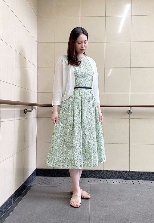 爽やかなカラーが夏らしい、小花柄のワンピース。