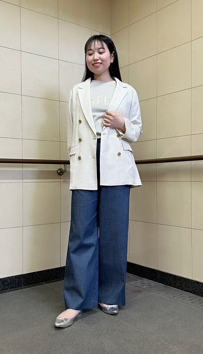 リネンジャケット×デニムガウチョ