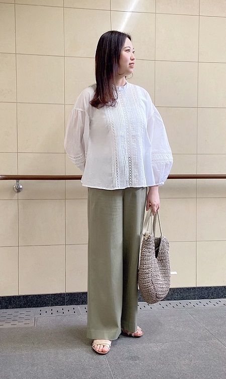 本日は、軽やかなコットンブラウスのコーディネートをご紹介いたします。