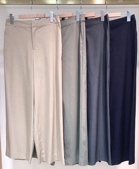 脚をスラッと見せてくれる、すっきりとしたシルエットのワイドパンツ。