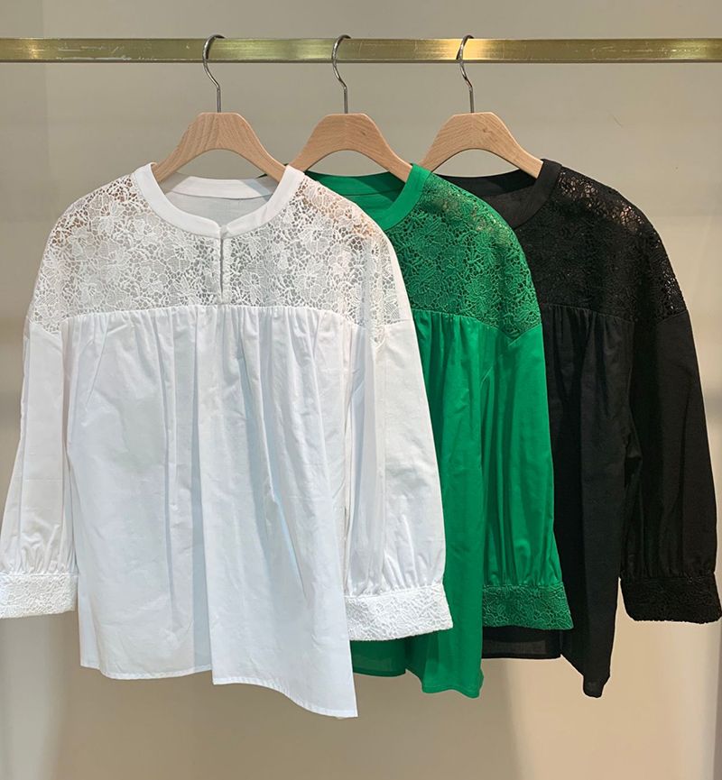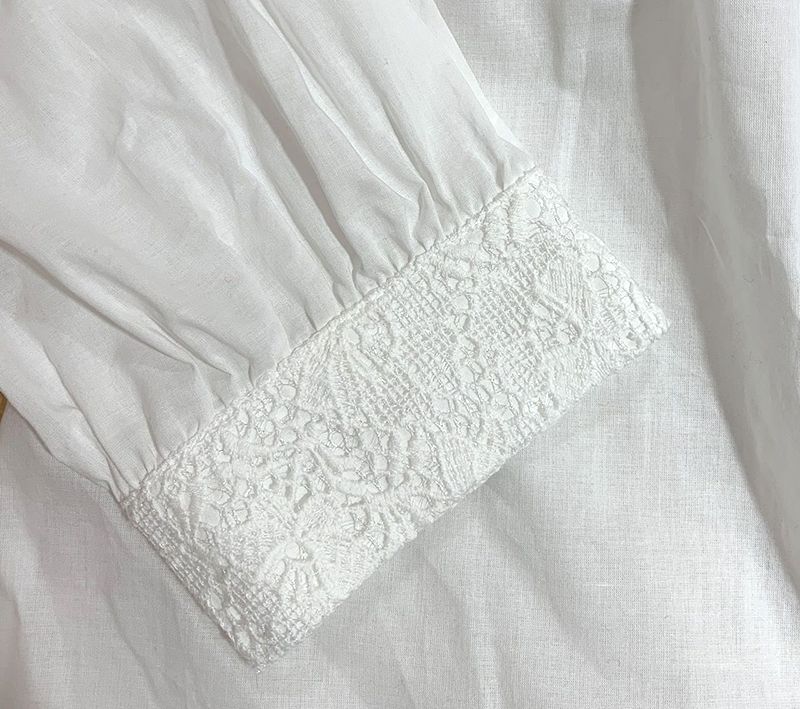 顔まわりと袖口にレースをあしらった可愛いブラウスです!