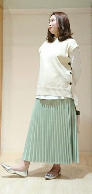 柔らかな色合いで、春らしいコーディネートに仕上がります。