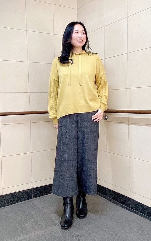 起毛素材で暖かく穿ける冬のガウチョパンツ。