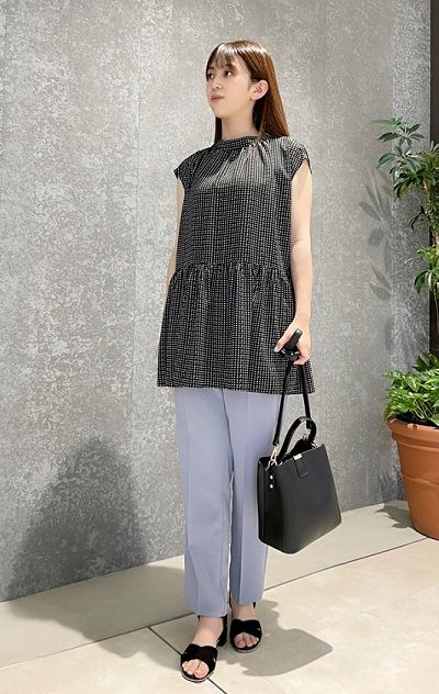ティアードブラウス×テーパードパンツ