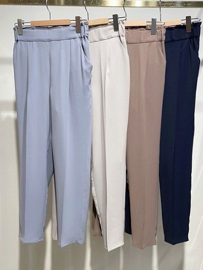 センタープレスのきれいめテーパードパンツ。