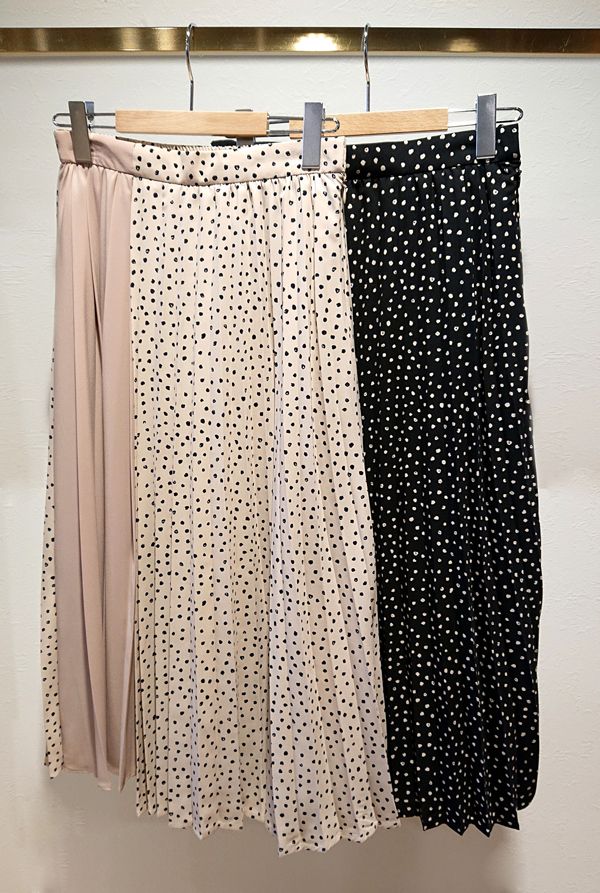 | 手書き風ドットプリント×無地のプリーツスカート。 | ||||||||