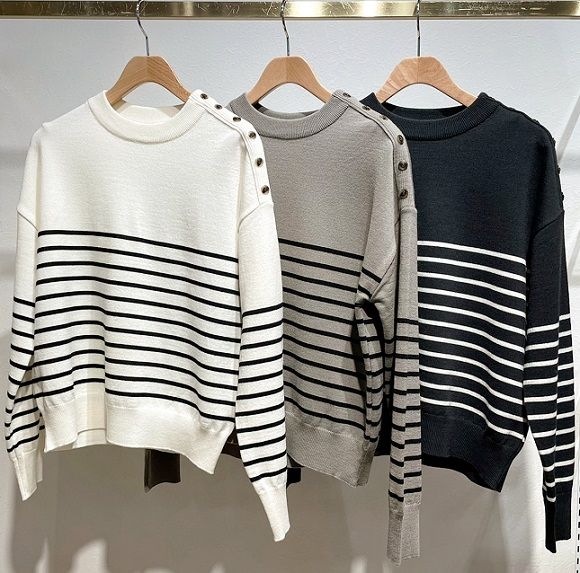 肩に並んだボタンがポイントのニット。