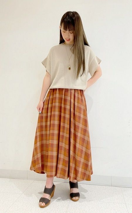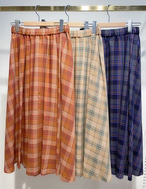 新作のチェック柄スカートを使ったコーディネートをご紹介致します♪