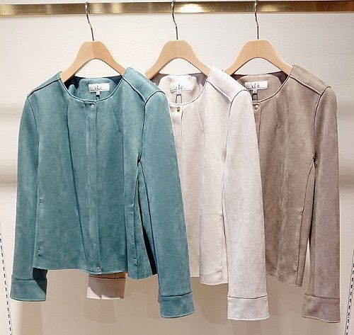 柔らかく上品な質感のフェイクスエードを使用したノーカラーブルゾン。