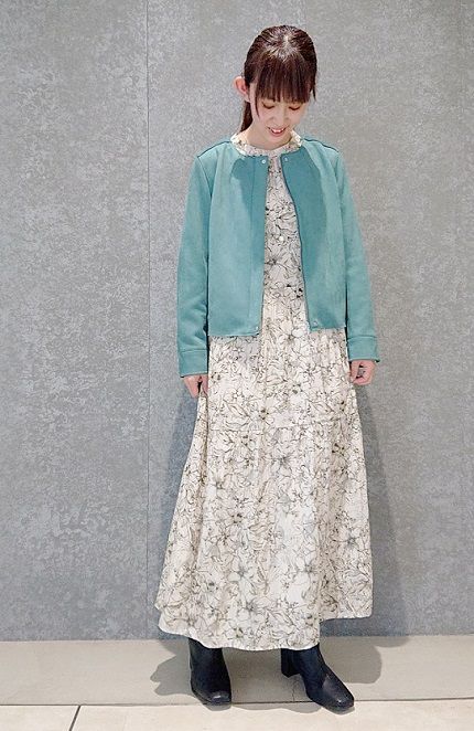 スエードブルゾン×フラワープリントワンピース