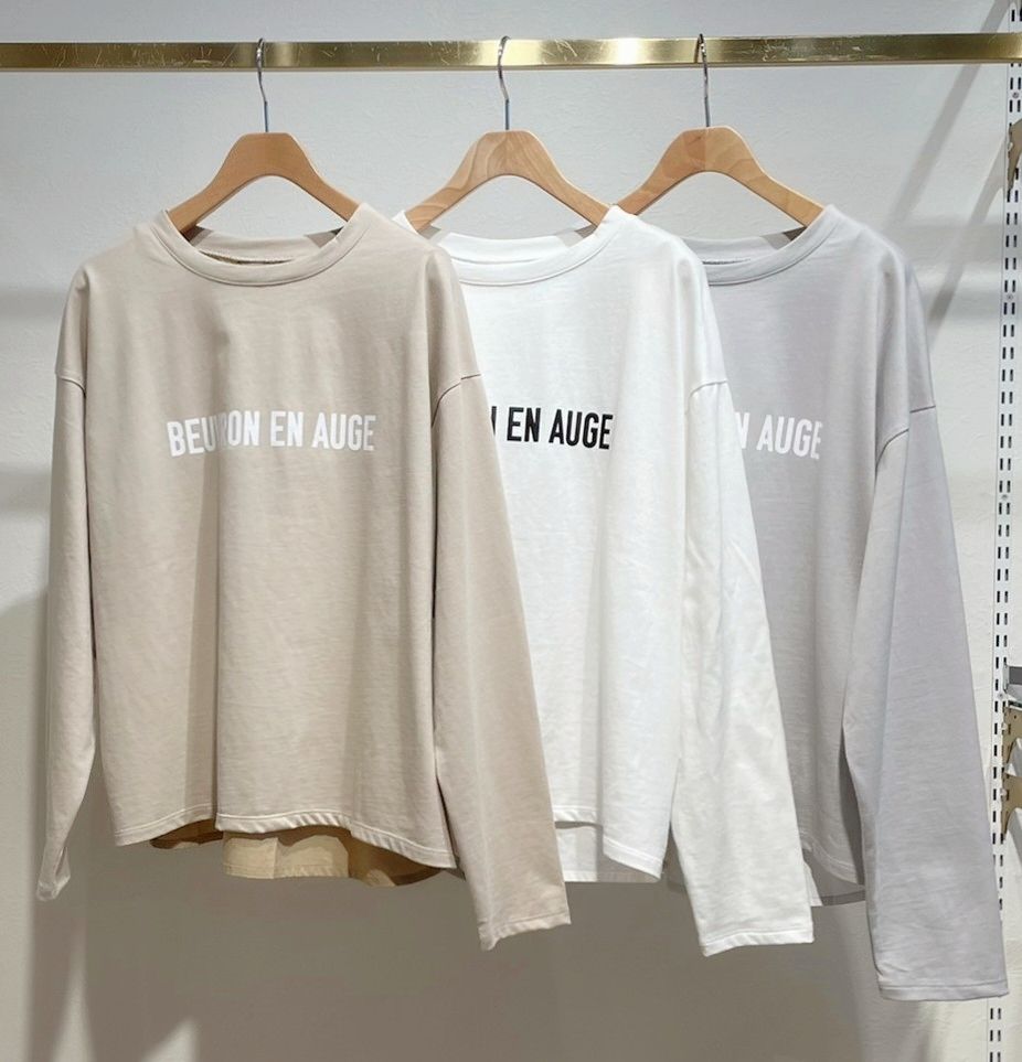 後ろ布帛ロゴ長袖T