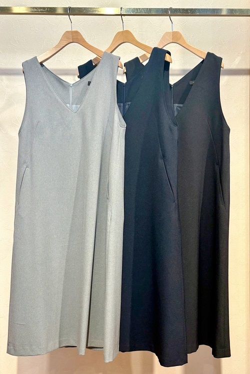 Vネック+控えめフレアのシンプルデザインのジャンスカ。