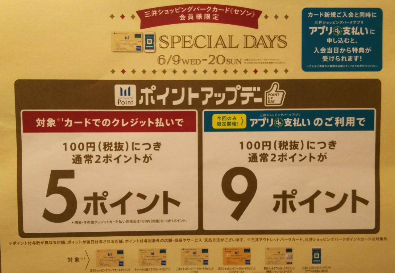 三井ショッピングパークカード(セゾン)でのお支払いで