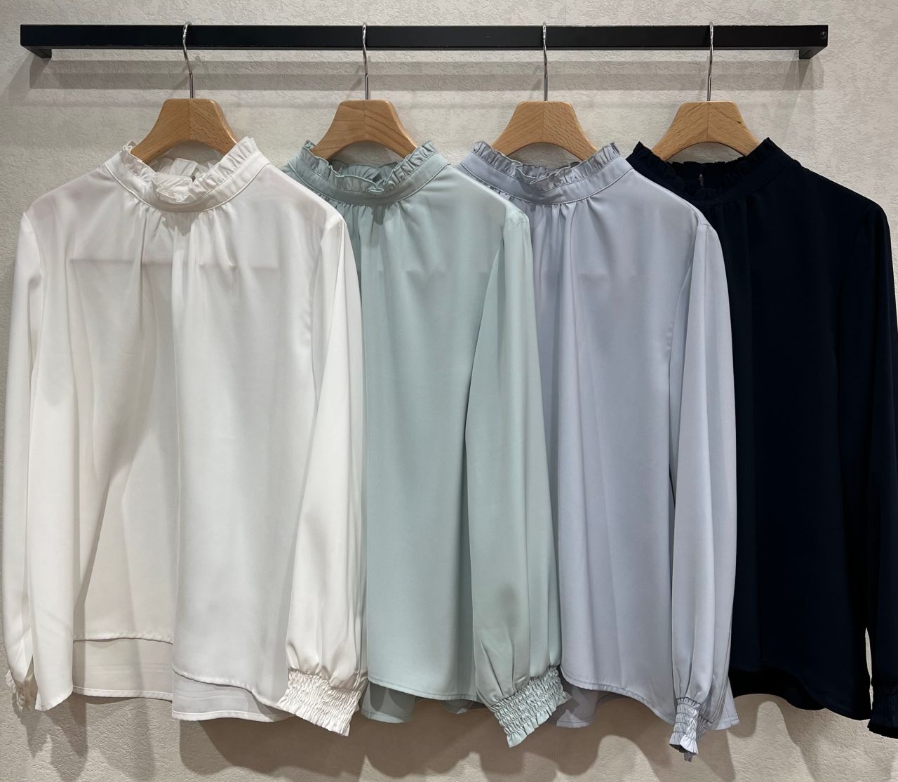 ニットやトレーナーの下からギャザーネックをだしたり、ジャンパースカートのインナーにしたり、ベストで重ね着しても良いですね。