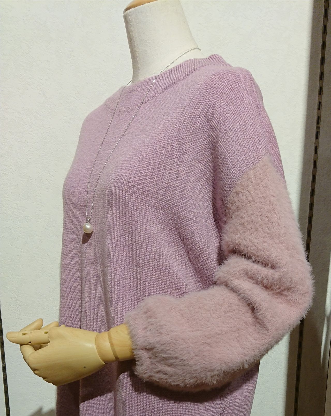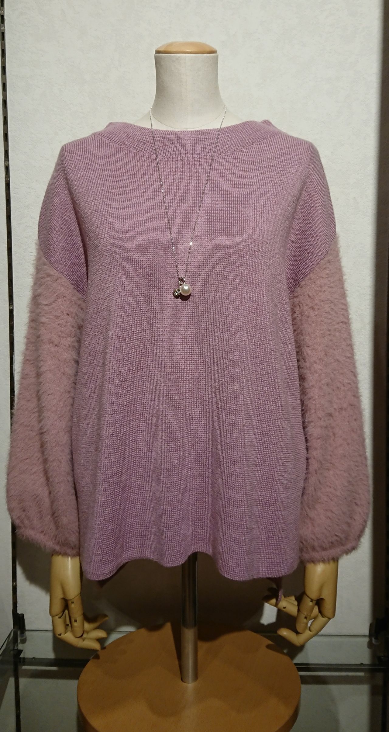 袖フェザーヤーンニット