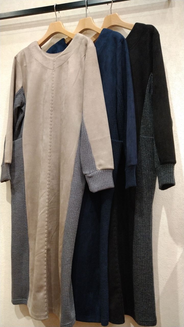 ★スエード+リブ切替ワンピース