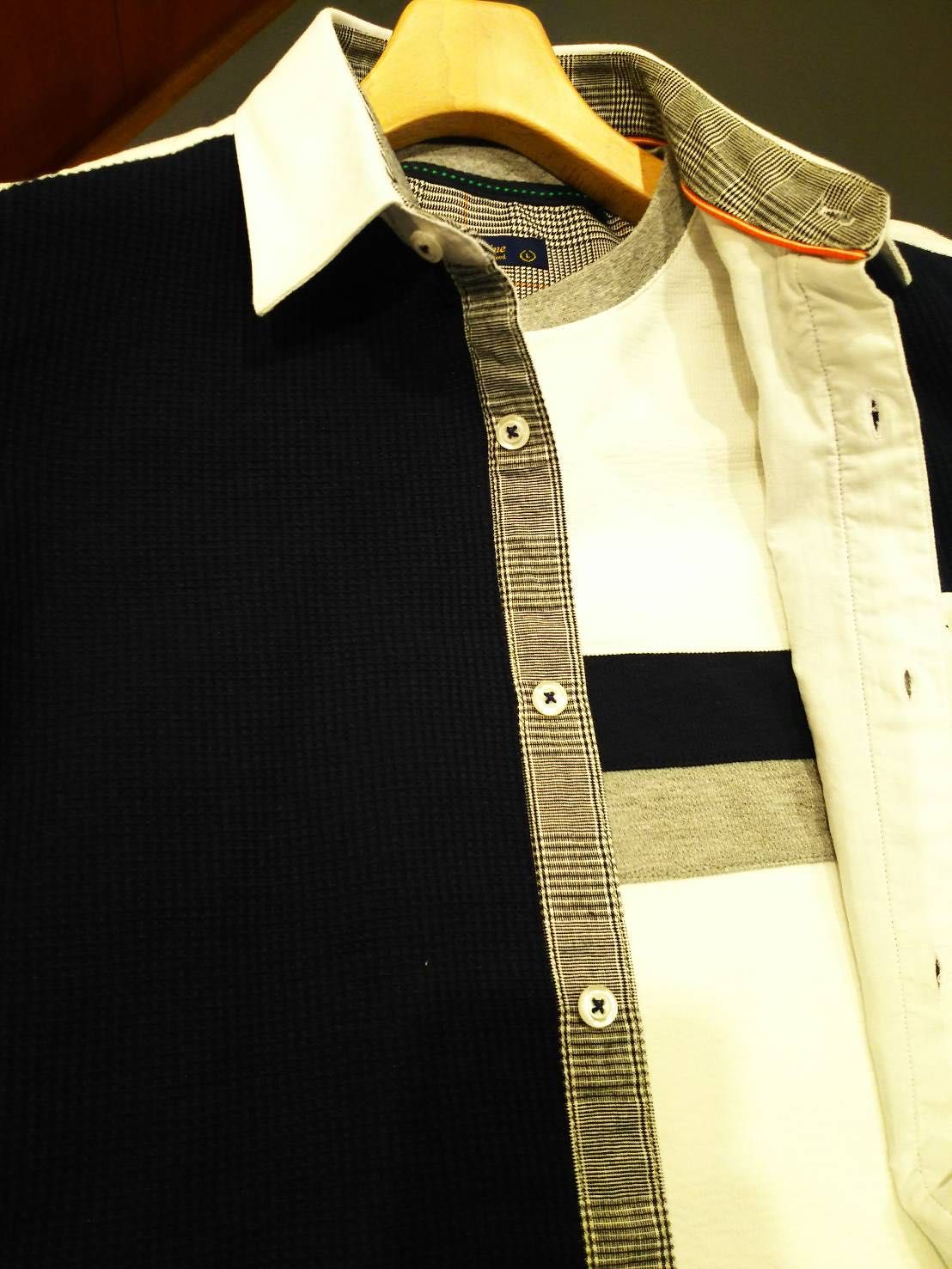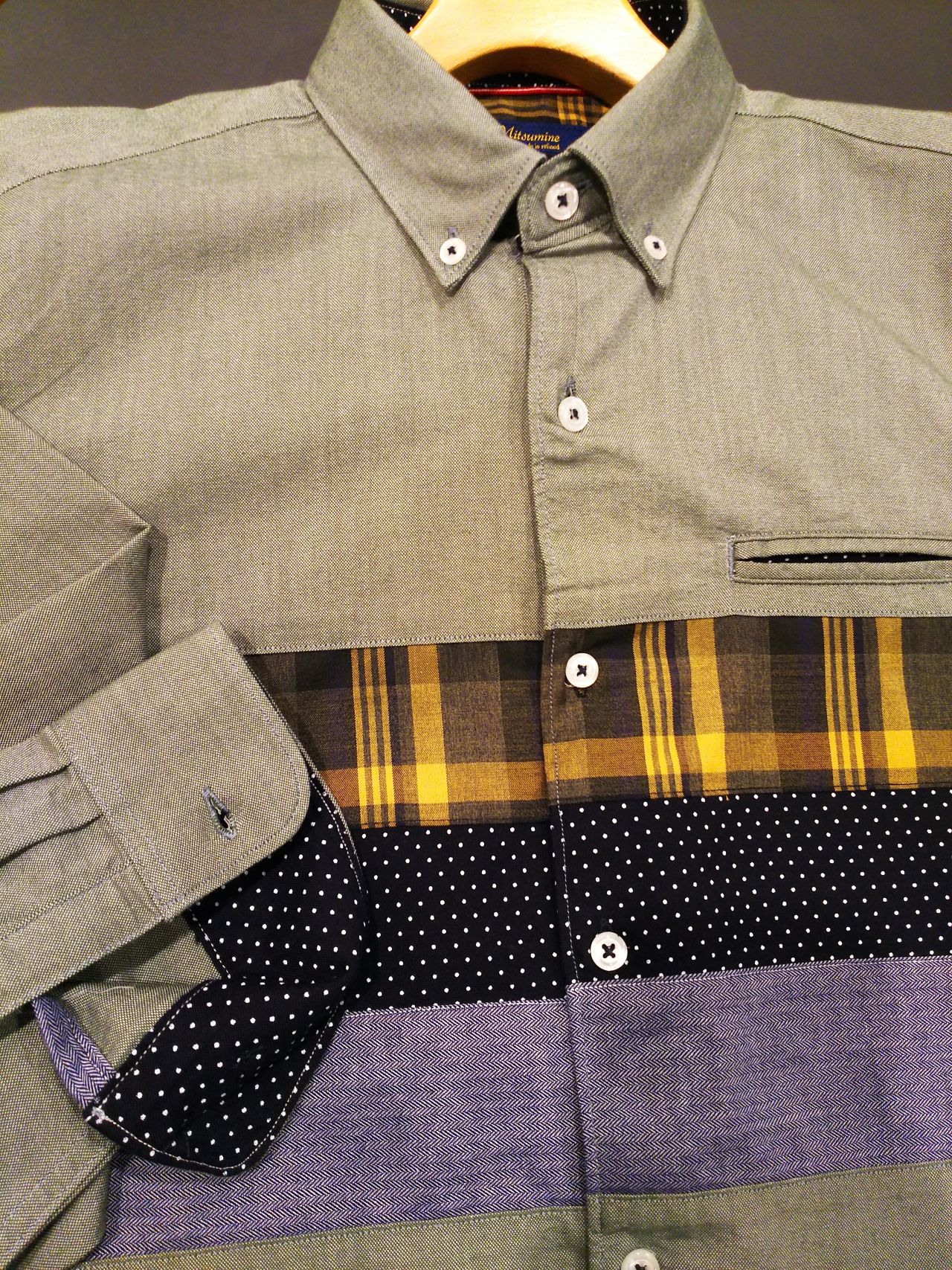 オックスのギミックタイプのシャツになります。前身の3段切り替えがとてもおしゃれな1枚となっております。