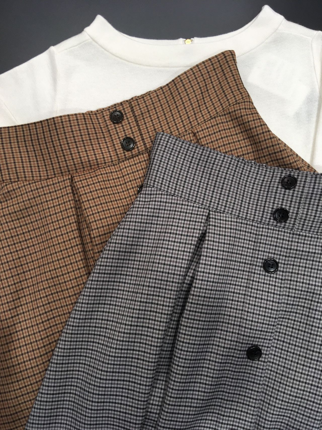 当店でも大人気のフロントボタンスカートをガンクラブチェック柄で一層、