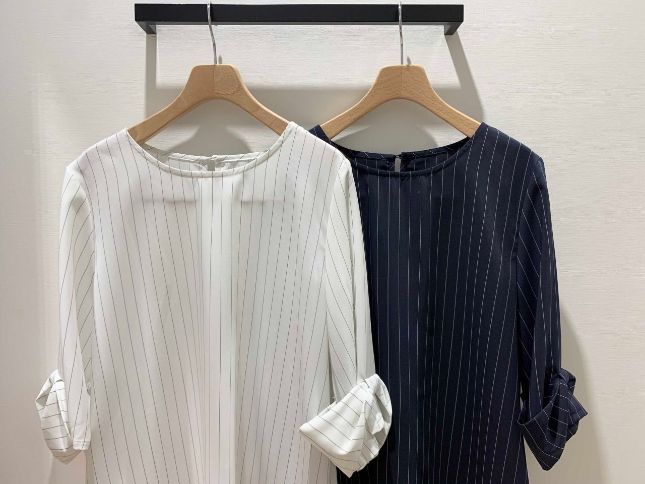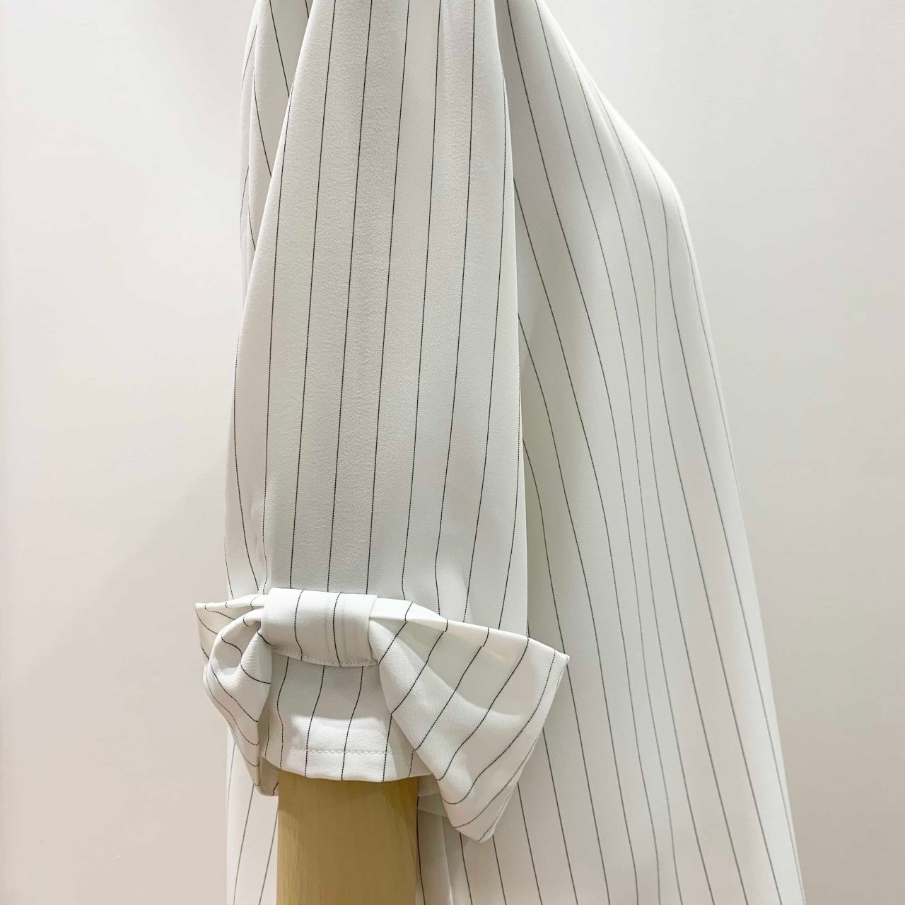 ペンシルストライプ リボン袖ブラウス