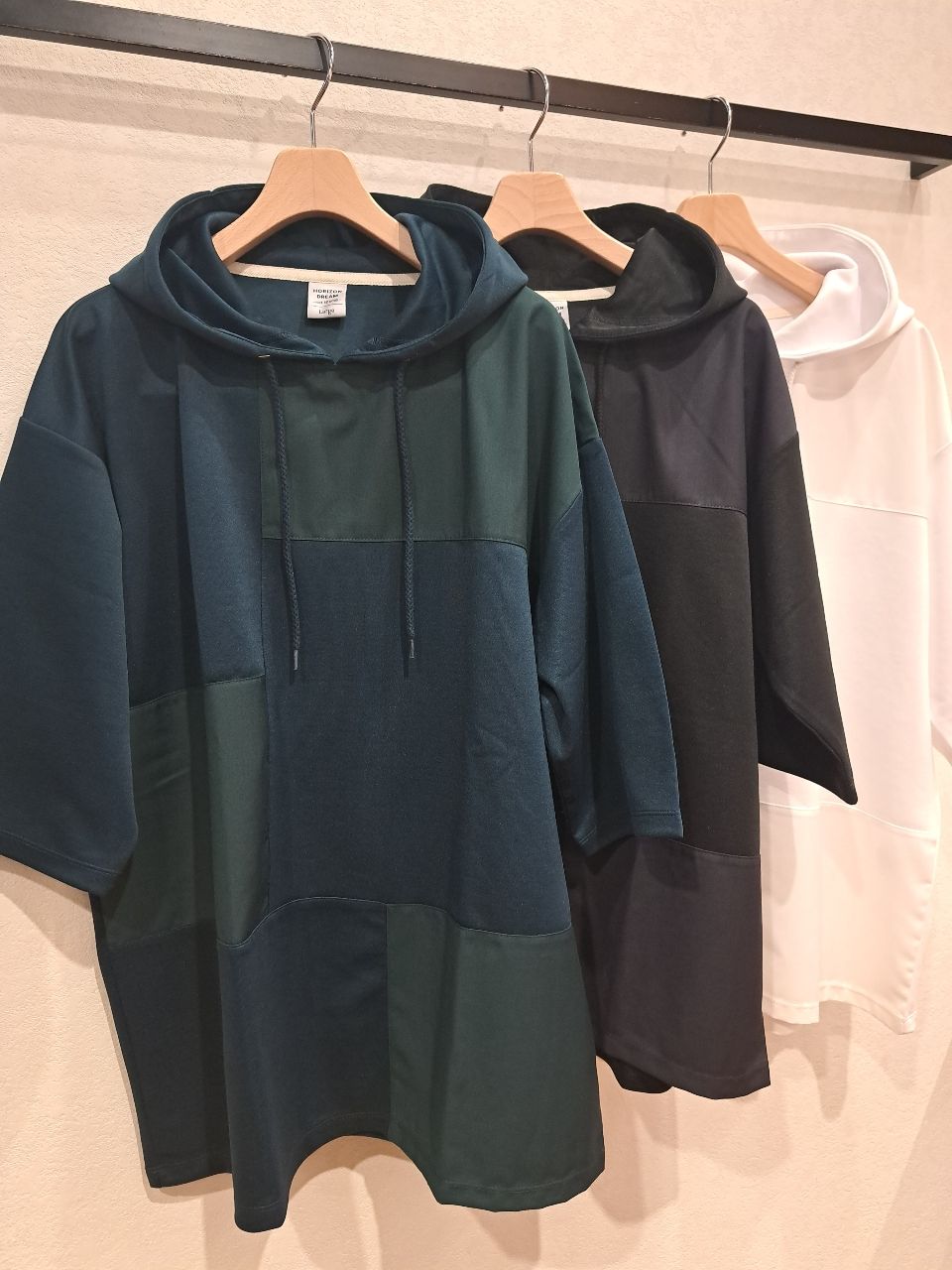 異素材同色切替パーカー