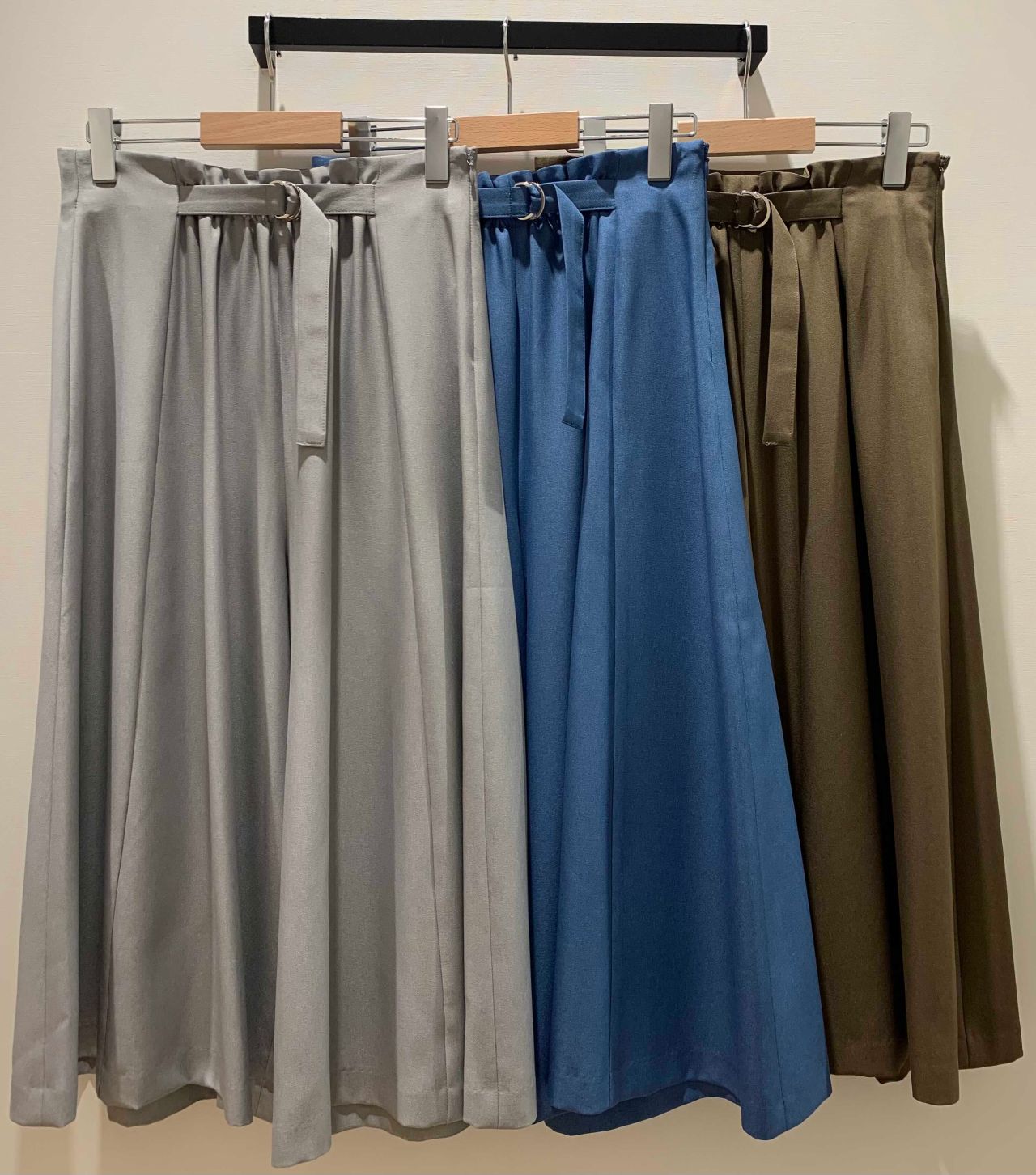 裾に向かってフレアが入った形の売れ筋ガウチョは、スカートっぽくも見え、程よく足首が見えますので夏らしく軽やかなコーディネートになります。