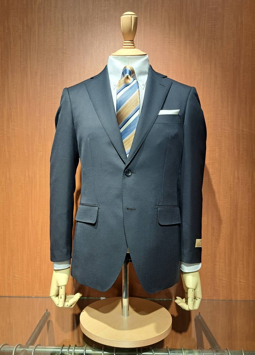 こちらのスーツは、国産ウール100%の生地を使用したしなやかでとても着心地の良いスーツとなっております。