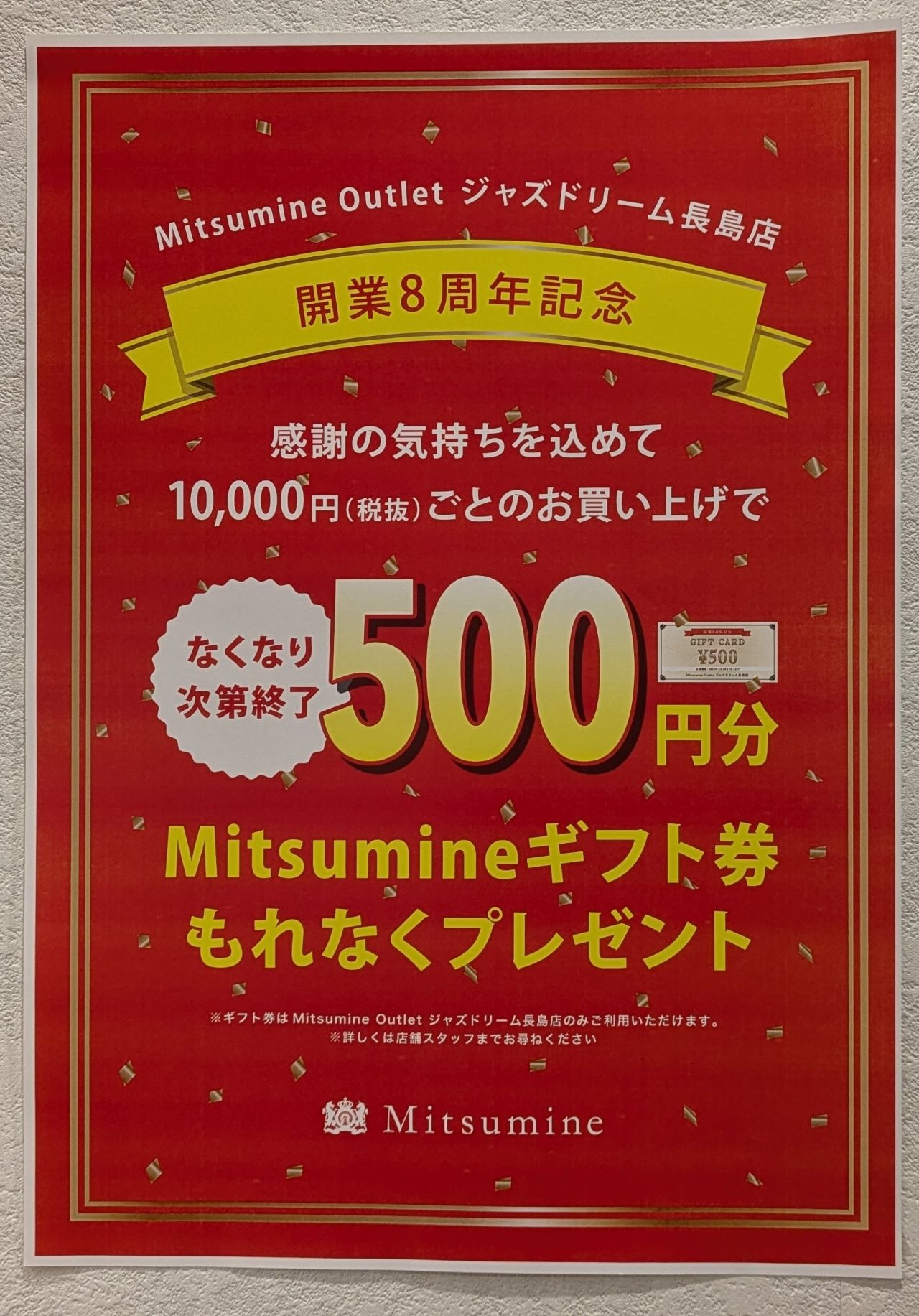 Mitsmine アウトレットジャズドリーム長島店では、6/30(予定)まで