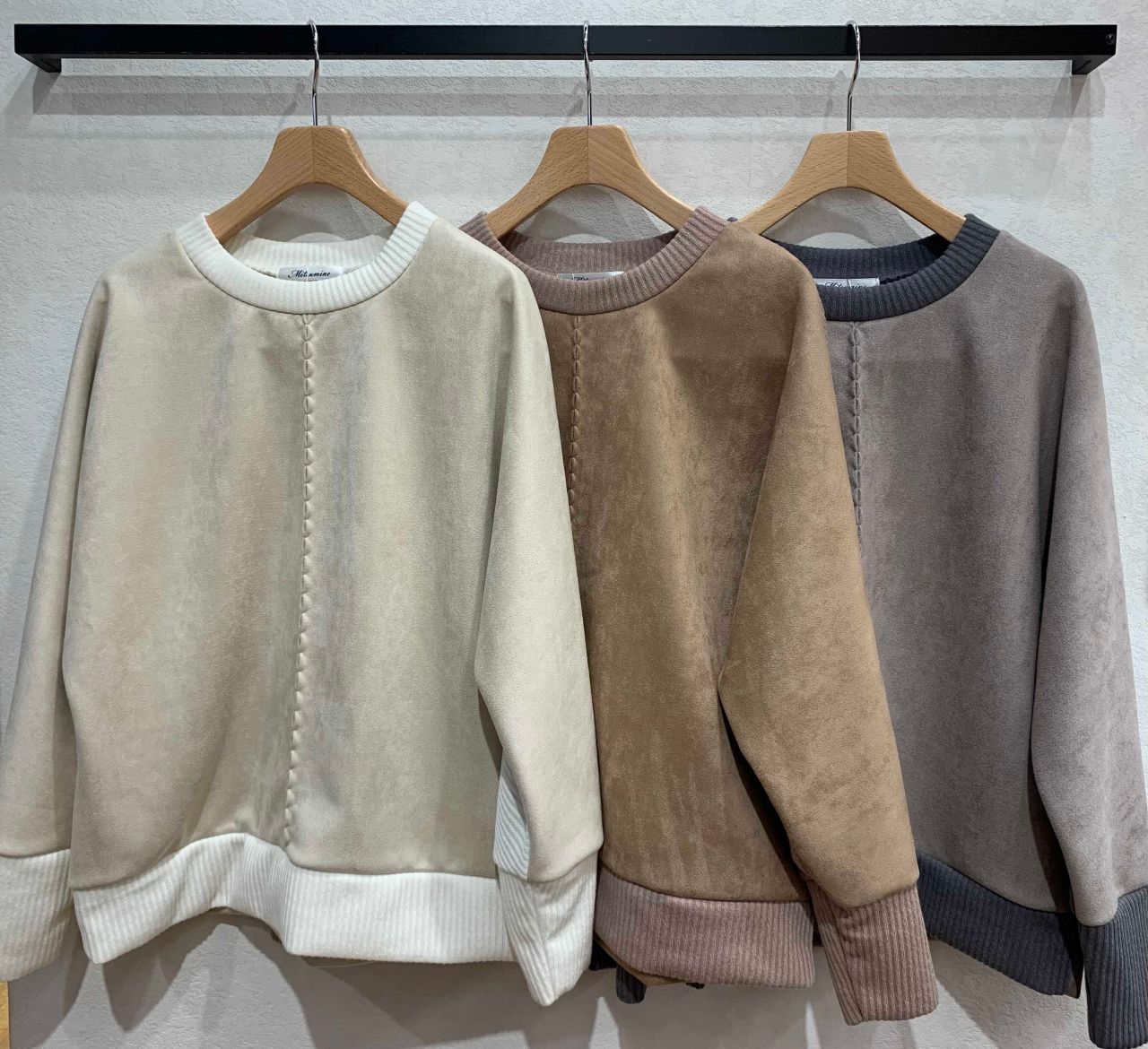 上品なスエードにリブニットを切替えたデザインがポイントです。