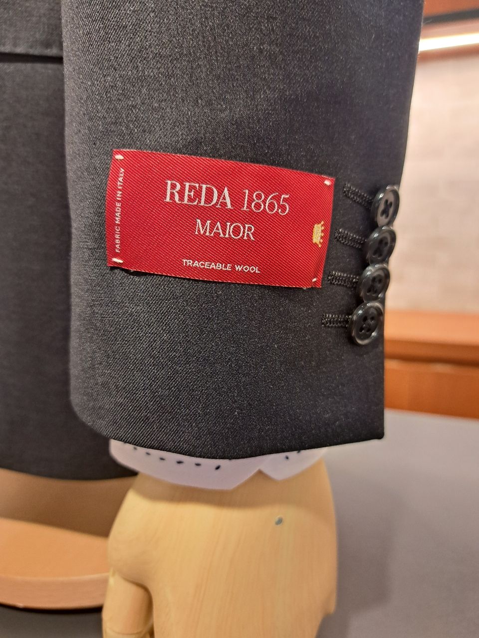 この生地は、super150sと言うREDAの最高峰レーベル<MAIOR>の生地を使用し極細原毛ならではの光沢感を実現しました。写真のグレー以外にもブラック、ネイビーをご用意致しております。