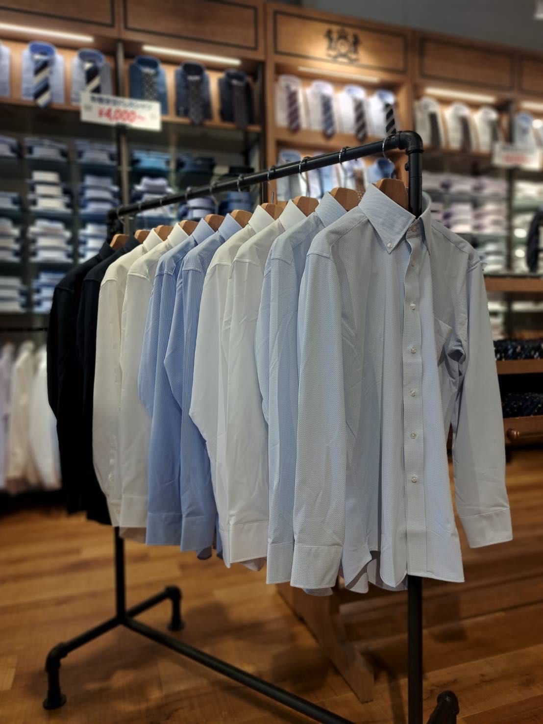 こちらのシャツは形態安定、超吸汗速乾、ストレッチと3拍子揃った高機能シャツとなっており、急な出張などに重宝すること間違いなしです。是非店頭でお確かめ下さいませ。