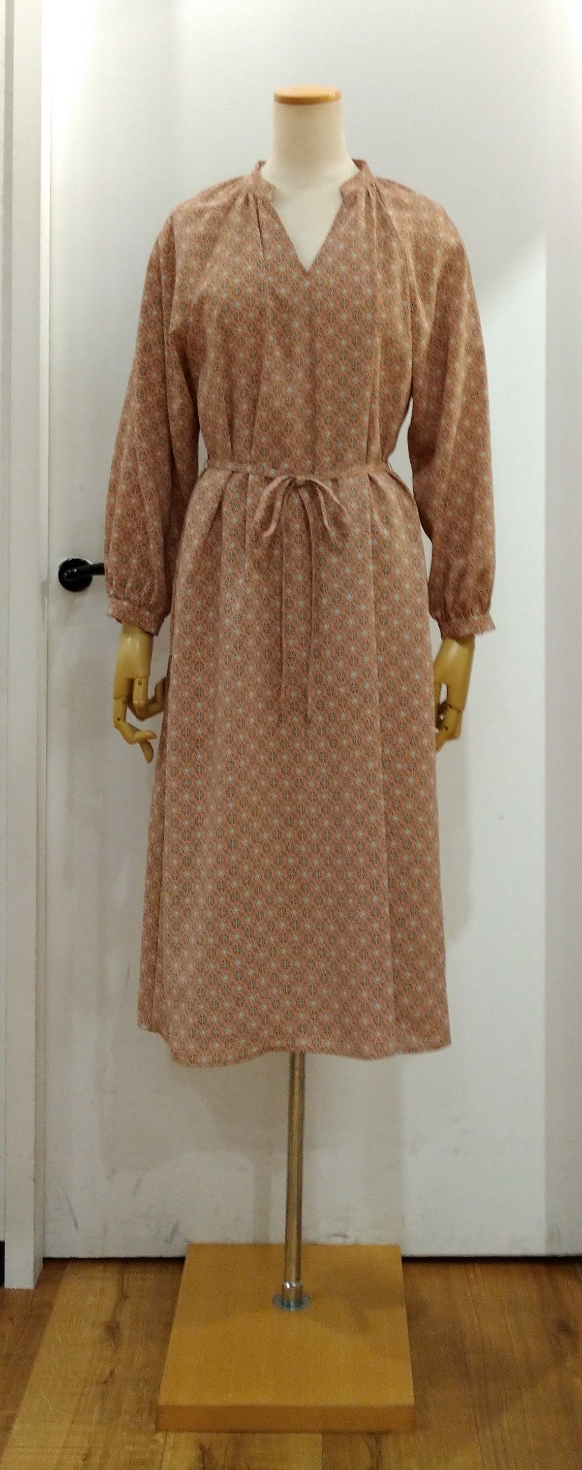 ★デシン花小紋ラグラン袖ワンピース