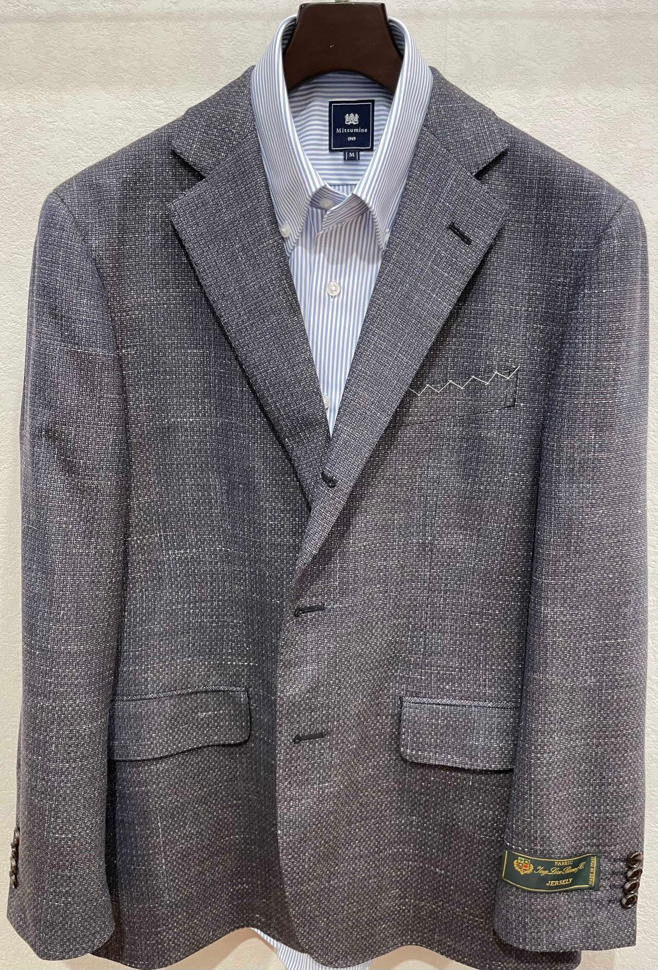 こちらのジャケットにはJERSELYの生地が使われております。