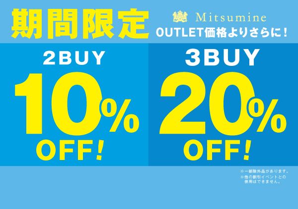 6/11〜20の期間中、メンズ・レディース共に2点お買い上げで10%OFF、3点お買い上げで20%OFFのセールを開催しています。