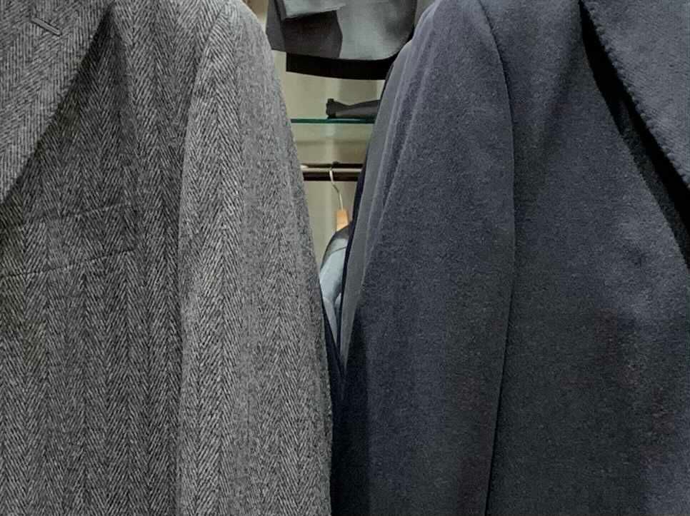 どちらもヘリンボーン柄ですが、ネイビーは目立ちにくくなっています。
