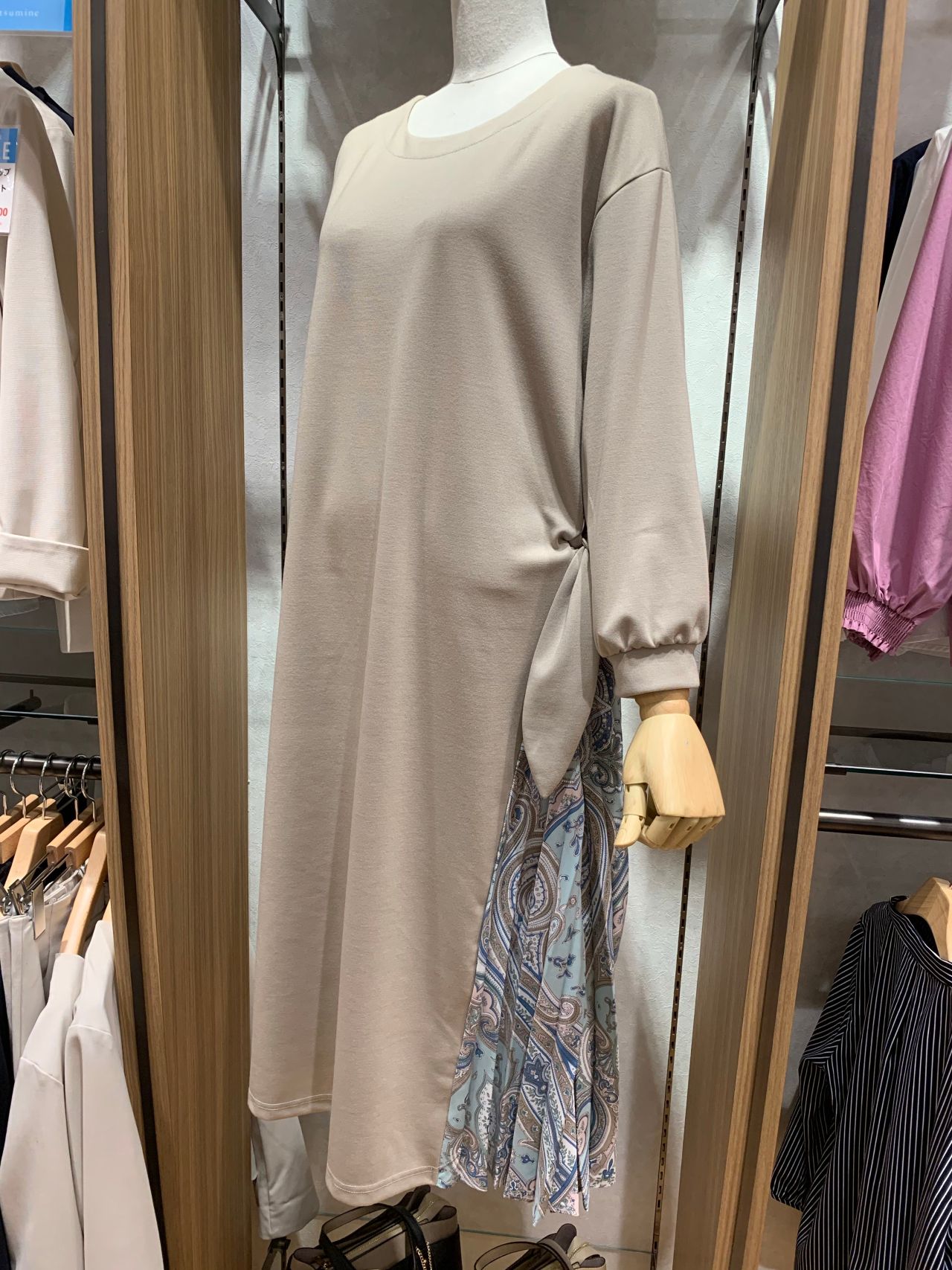 左サイドにはペイズリー柄のプリーツが入っており、