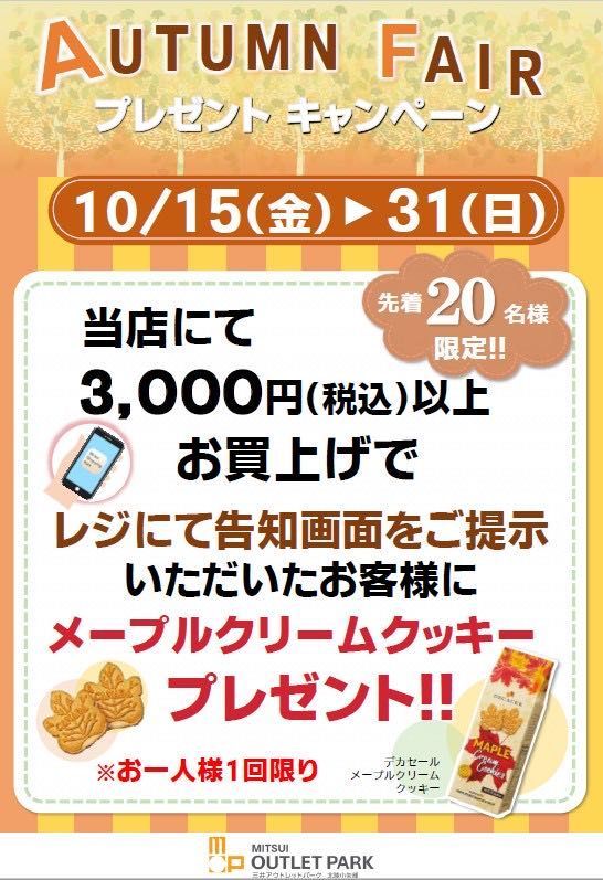 オータムフェアープレゼントキャンペーンもございます。