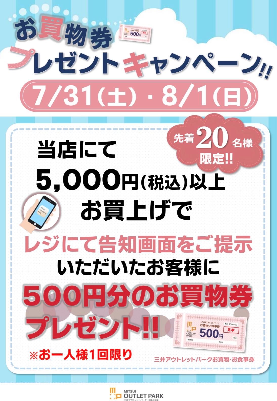 ⭐︎7/31(土)・8/1(日)お買物券プレゼントキャンペーン⭐︎
