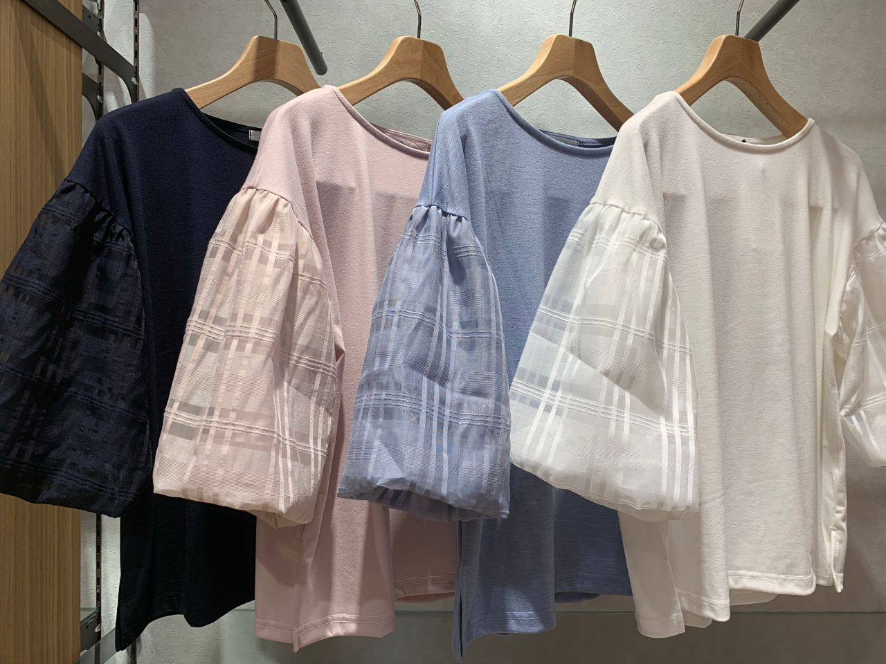 袖がチェック柄のバルーン袖になっており、シースルーになっています。