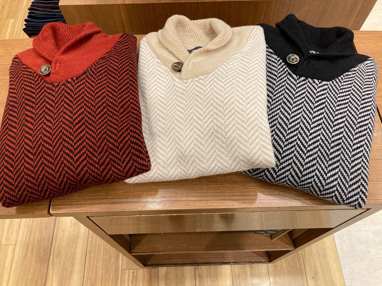 ヘリンボーンショールニット