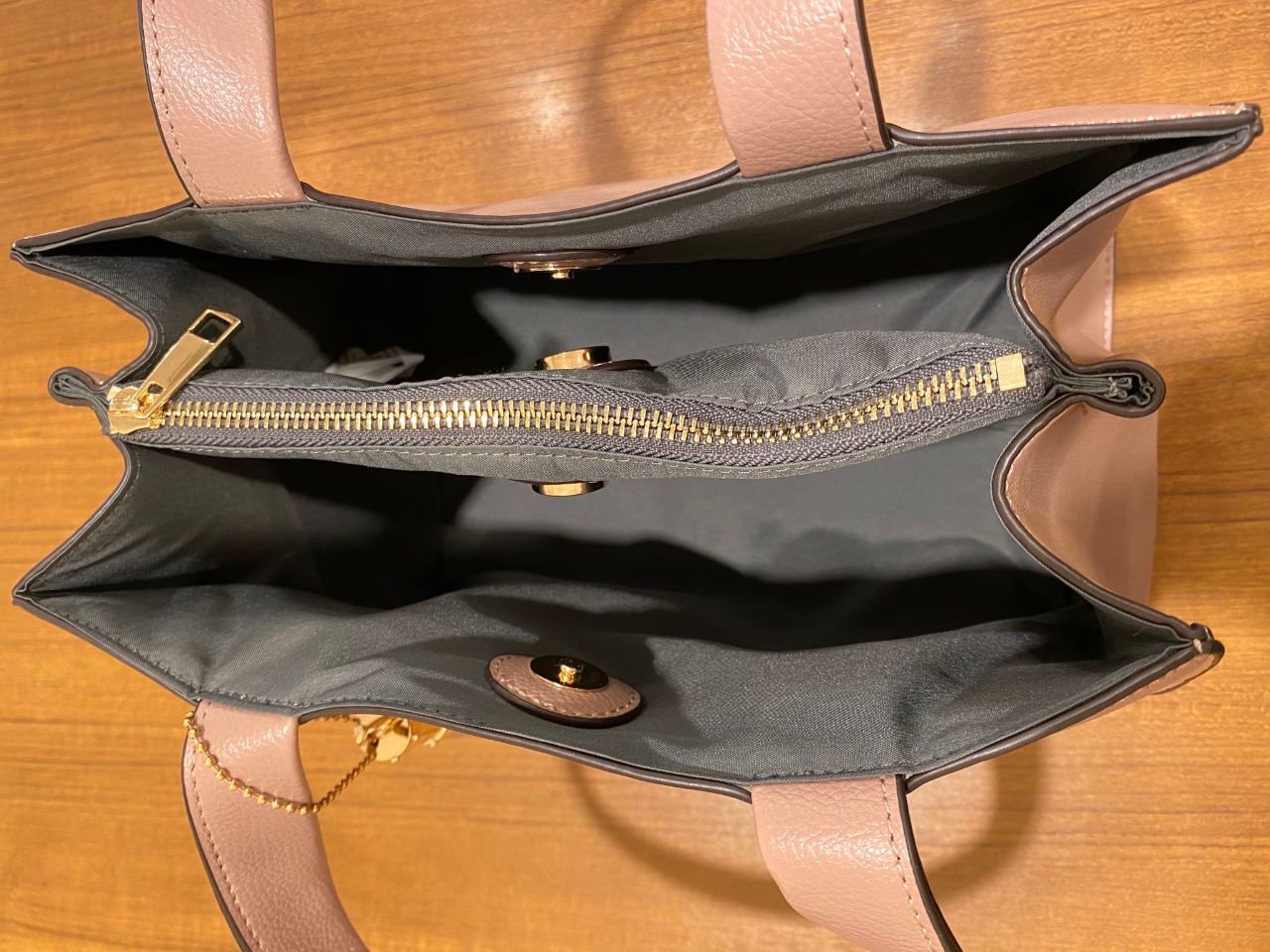 内部は、真ん中にファスナー付ポケットがひとつ付いています。