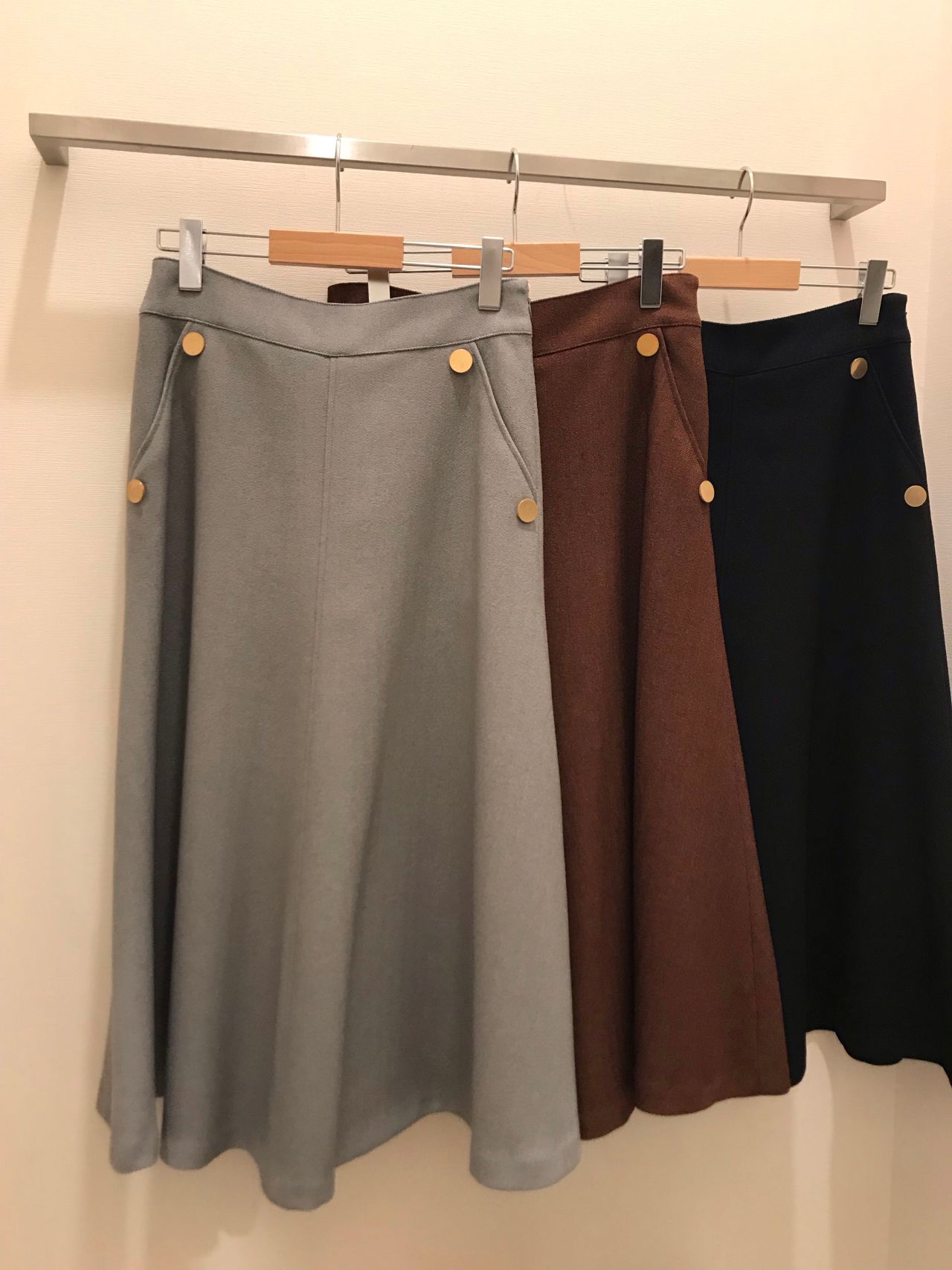スカートの両サイドに付いている金ボタンがポイントです。