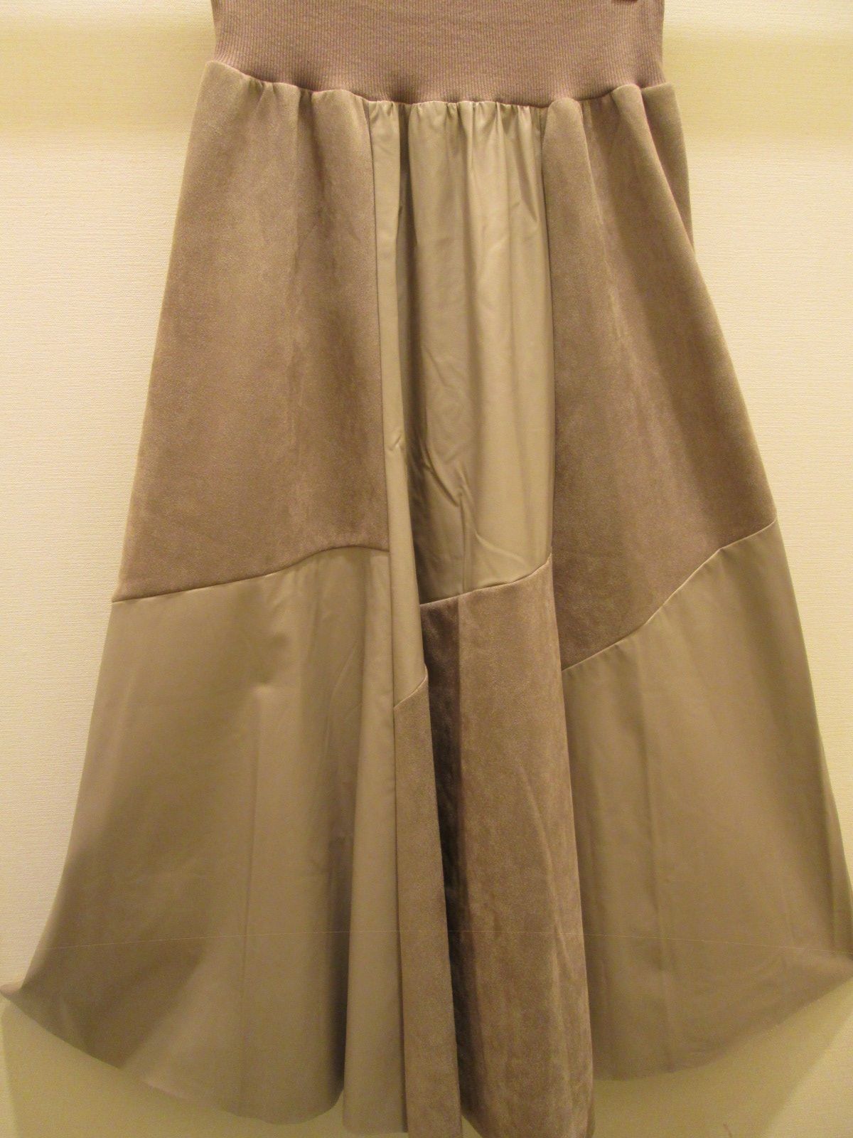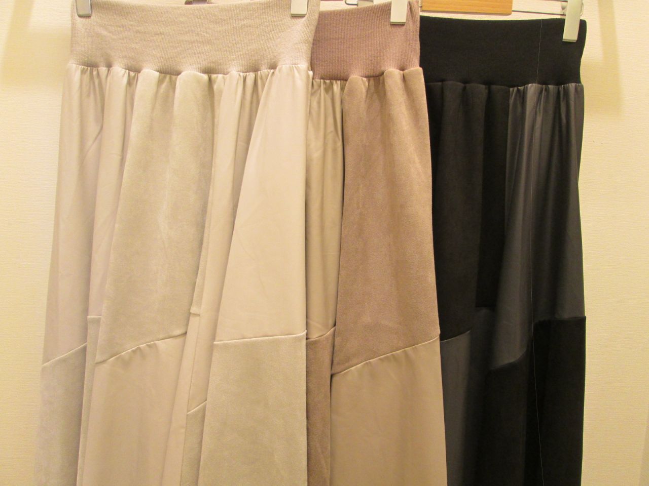 今回はスエード×エコレザーフレアスカートをご紹介します!