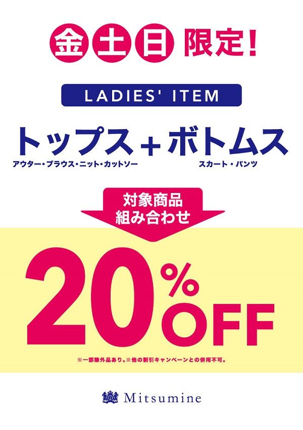 お買い上げいただくと20%offになるお得なセールを開催いたします。