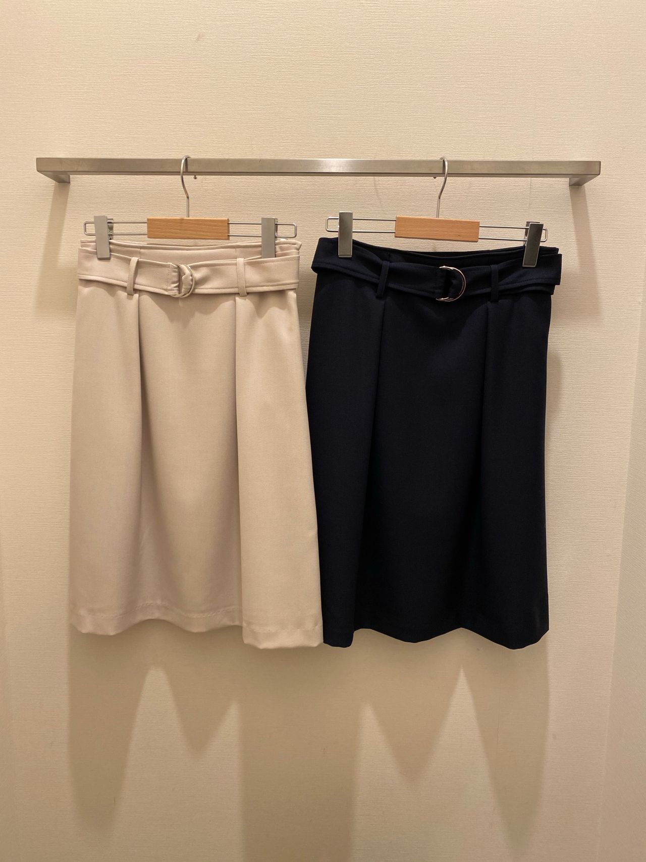 太めのDカンベルトはスカート本体と同じカラーの生地を使用しているため、