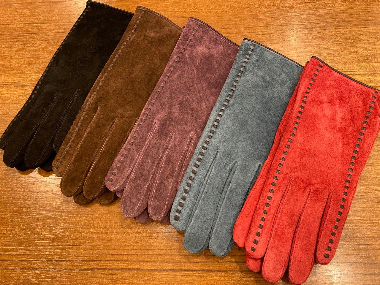 こちらの手袋には、柔らかい質感のスウェード生地を使用しております。