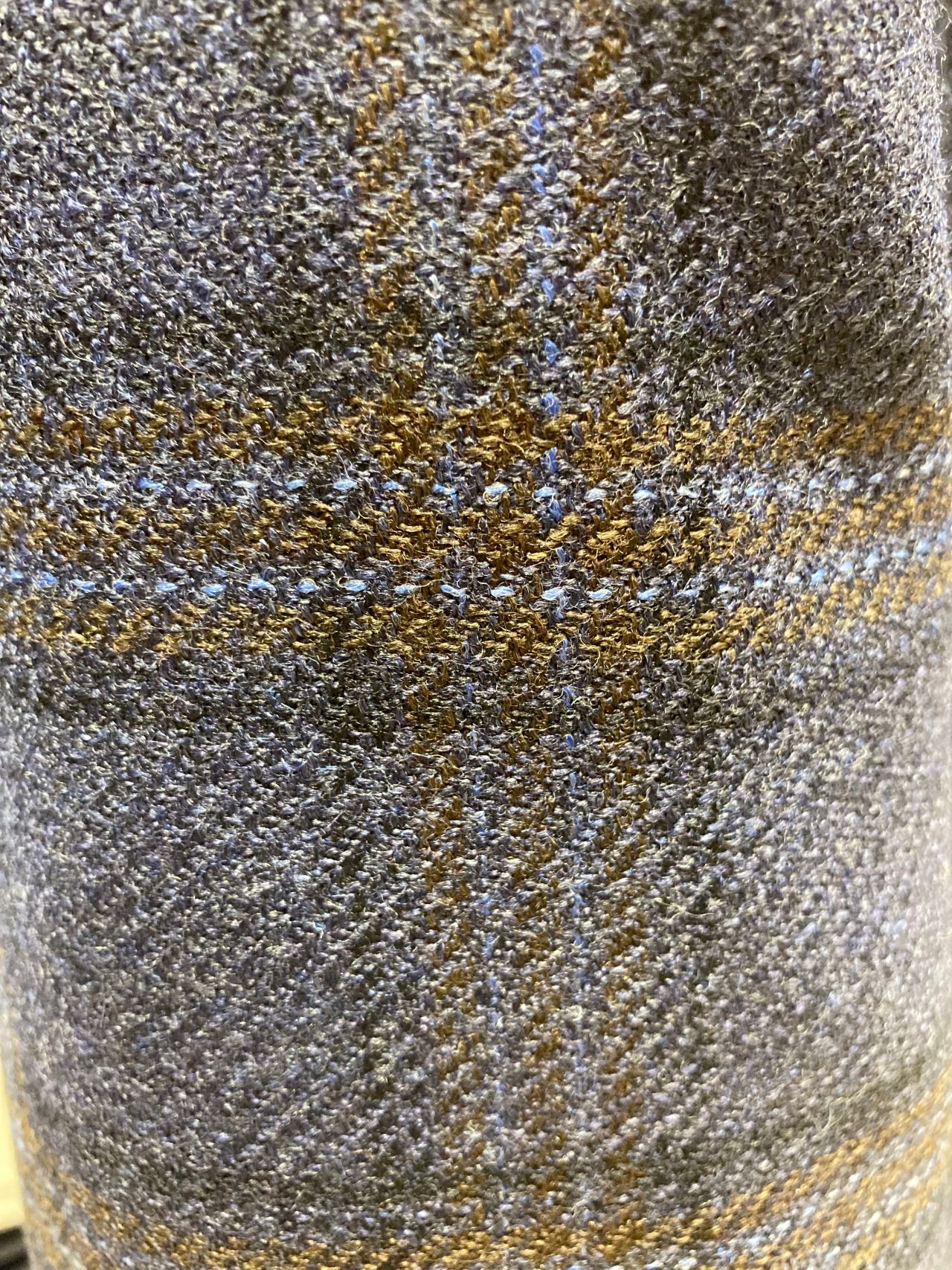 デザインはブラウンのウィンドウペンチェックですが、その間にブルーの糸を使用する事でアクセントになってとても綺麗ですね。