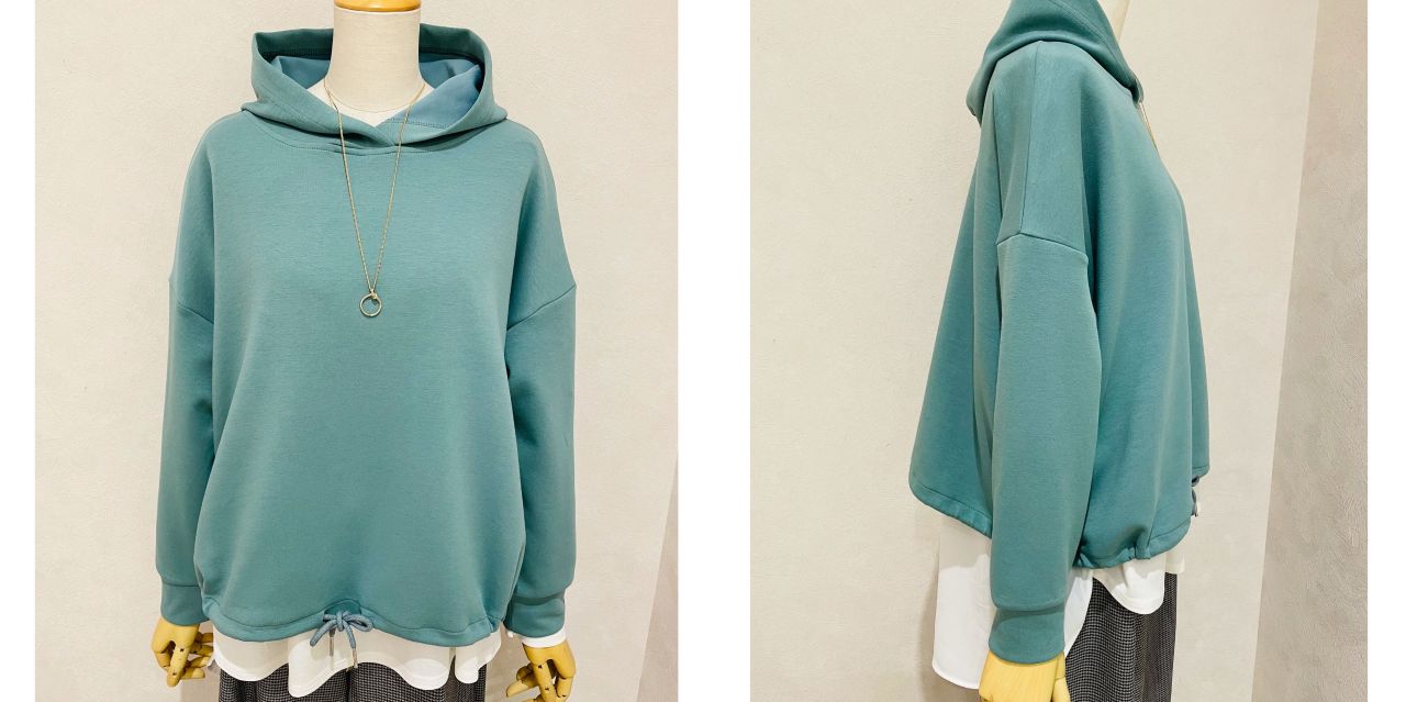 今回はグリーンのフーディーと
