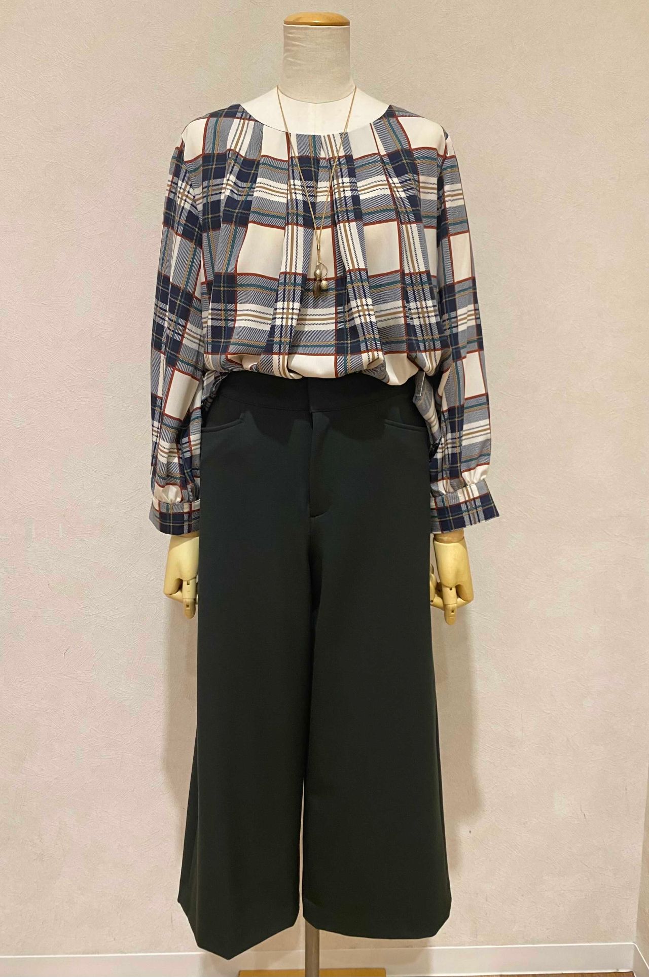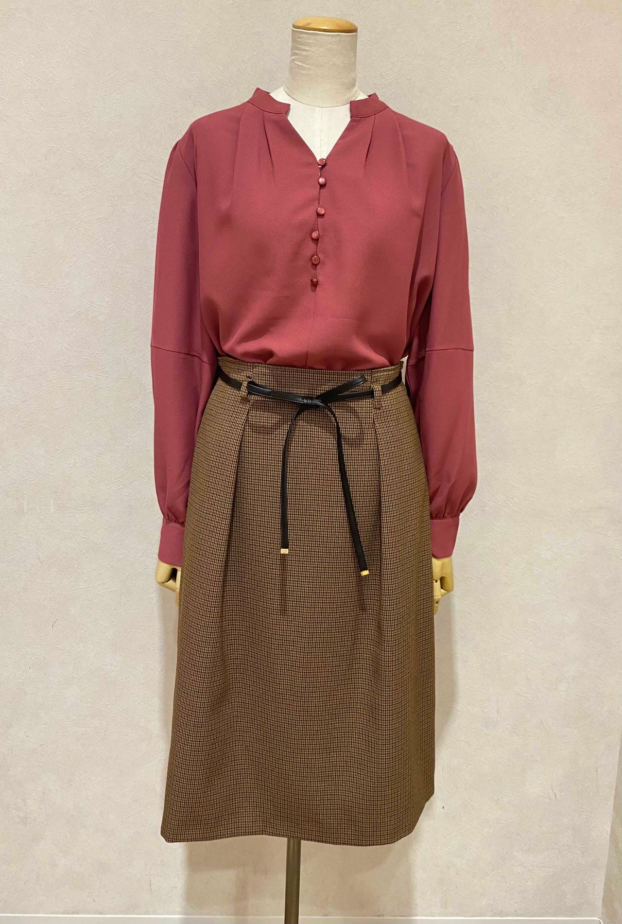 今の時期は、秋カラーのブラウスと合わせることで、秋らしさ全開のコーデに仕上がります!!
