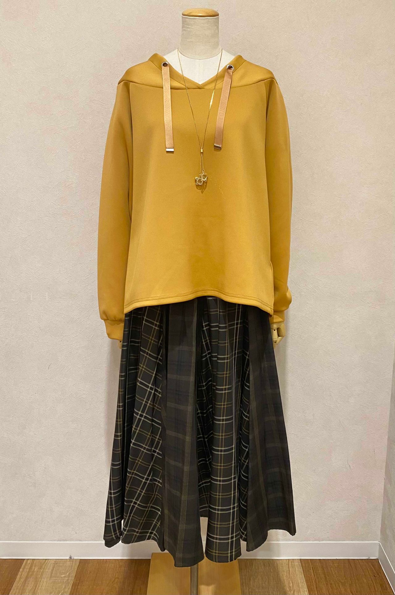 大きめのチェック柄がフレアごとに切り替わっており、このスカート1枚で秋をとても感じられます◎